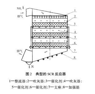 典型的“半干法脫硫+SCR”工藝流程如圖1所示,其主要設(shè)備SCR反應(yīng)器如圖2所示。可見,原煙氣通過GGH換熱器與脫硝后的凈煙氣換熱并升溫至250℃,再與加熱爐燃燒產(chǎn)生的高溫?zé)煔饣旌仙郎刂?80℃,然后與NH3在混合器的擾動(dòng)下得以充分混合,混合后的煙氣進(jìn)入SCR反應(yīng)器。